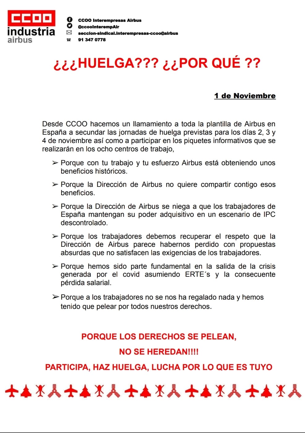 Enlaces a información pública sobre el conflicto en AIRBUS